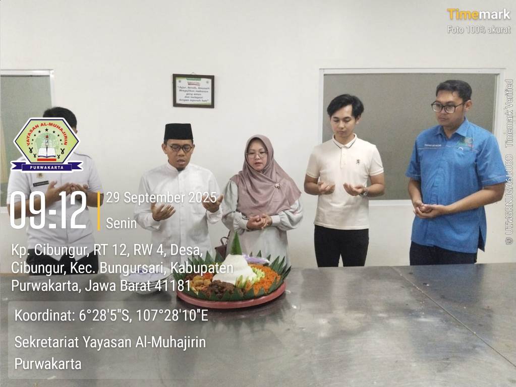 Ketua Yayasan Al-Muhajirin Purwakarta, Dr. Hj. Ifa Faizah Rohmah, M.Pd., meresmikan SPPG Cibungur Bungursari 001 pada Senin (29/9/2025). Doa dipimpin oleh KH. Rd. Marpu Muhyiddin Ilyas, M.A., pengasuh Pondok Pesantren Al-Muhajirin Pusat, yang memohon keberkahan dan kelancaran dalam pengelolaan dapur sehat ini.